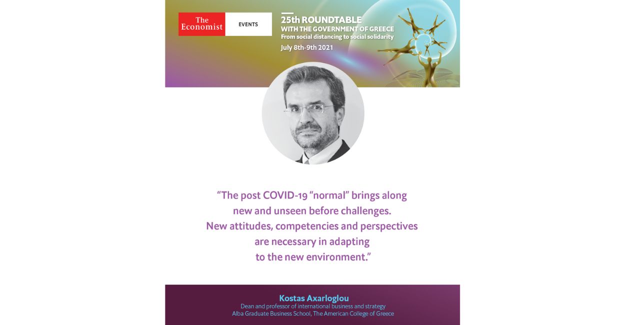 Alba is once again the academic partner of the event while Alba's Dean Dr. K. Axarloglou will be joining the panel "Restarting business after covid-19 " to share his thoughts and discuss the issue from the academic and business point of view.