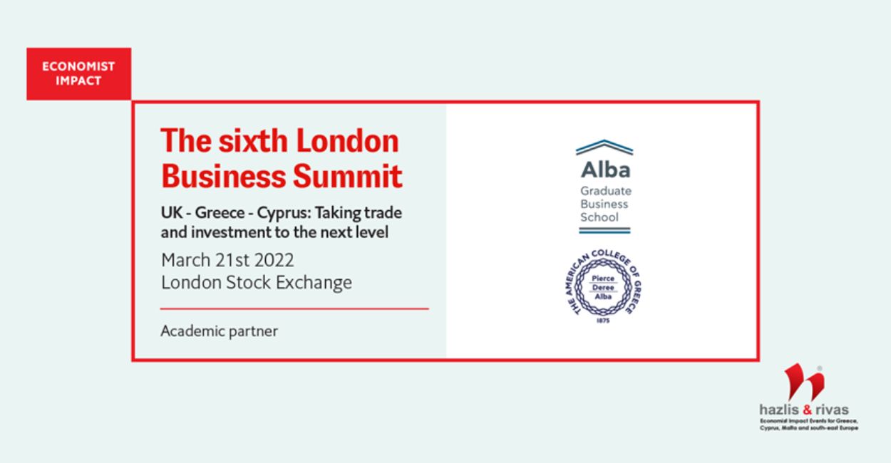 The Economist’s Sixth London Business Summit entitled “UK – Greece – Cyprus: Taking trade & investment to the next level” is scheduled to take place on March 21st 2022 at the London Stock Exchange in a hybrid manner (physical presence/livestreaming) to discuss business and investment opportunities in the region.