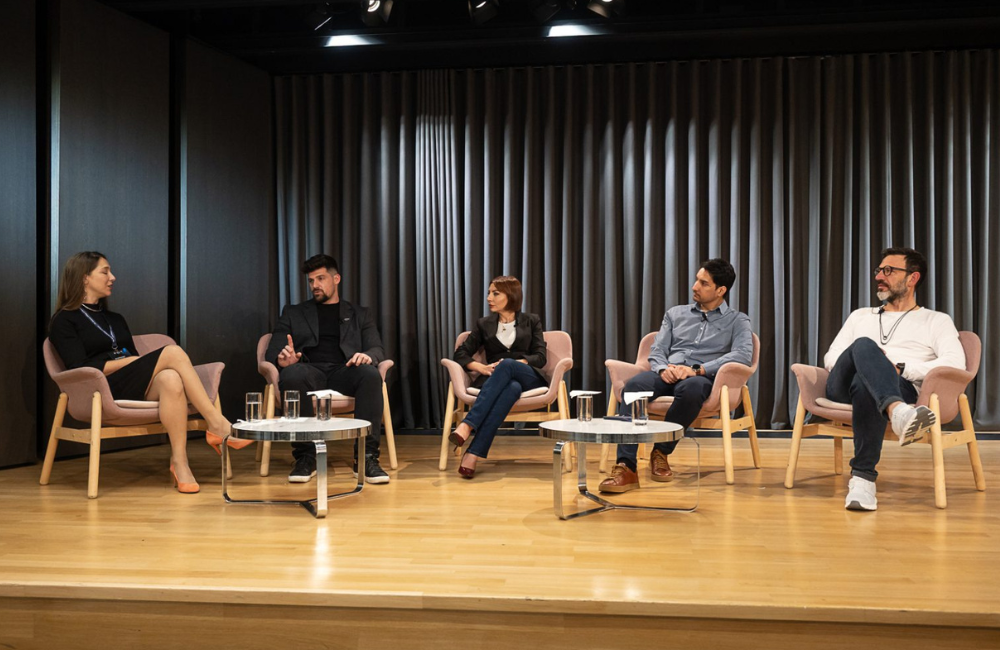 Moderated by Nefeli Agkyridou (Pierce ’03) — Director of Star Channel’s online media and accomplished journalist — the program featured four distinguished alumni: Athena Polina Dova (Alba ’13), serial entrepreneur and founder of Owiwi; Fridoon Joinda (Deree ’24), award-winning multimedia producer and startup founder; Yiannis Vidras (Deree ’99), Coca-Cola HBC executive and mindset transformation coach; and Ioannis Volikakis (Alba ’24), former Special Forces officer and Amazon operations manager.