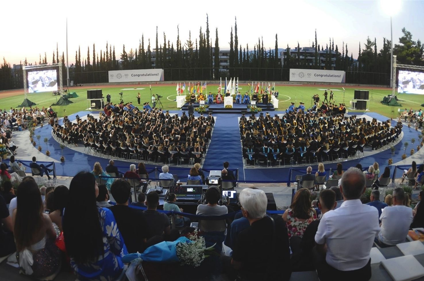 The first “first” is that graduating students from Alba Graduate Business School and the Deree School of Graduate and Professional Education came together for our first commencement dedicated exclusively to the College’s graduate programs. The second “first” is that students graduating from the College’s graduating programs will be the first graduates to receive their degrees from The American University of Greece for academic work completed at The American College of Greece in the Alba Graduate Business School and the Deree School of Graduate and Professional Education. The third “first” is that the commencement ceremony was held at the ACG stadium, allowing us to accommodate a larger audience and celebrate our graduates’ achievements with friends, family and the ACG community.