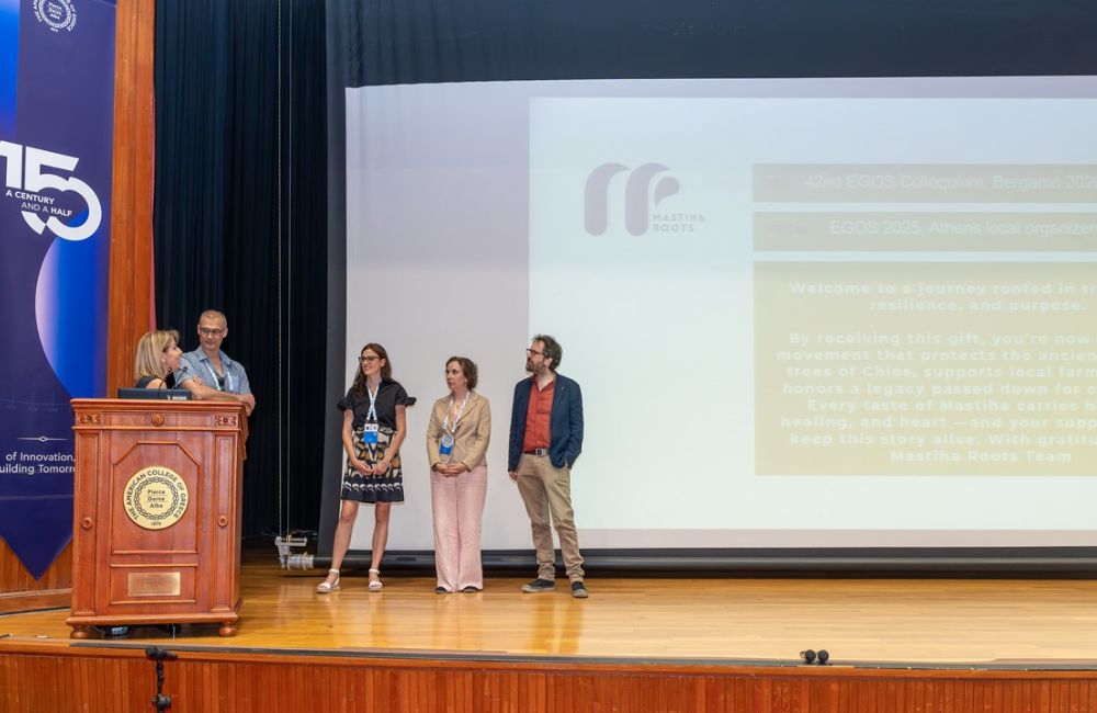 As the Colloquium drew to a close, Alba and ACG passed on a living symbol of continuity and care: a Chios mastiha tree, adopted in the name of the upcoming 42nd EGOS Colloquium in Bergamo, 2026. This native Greek tree offers its healing resin only through patience, cultivation, and time — echoing the type of creativity and scholarship that is grounded, sustainable, and deeply human. The tree was adopted with the support of Mastiha Roots