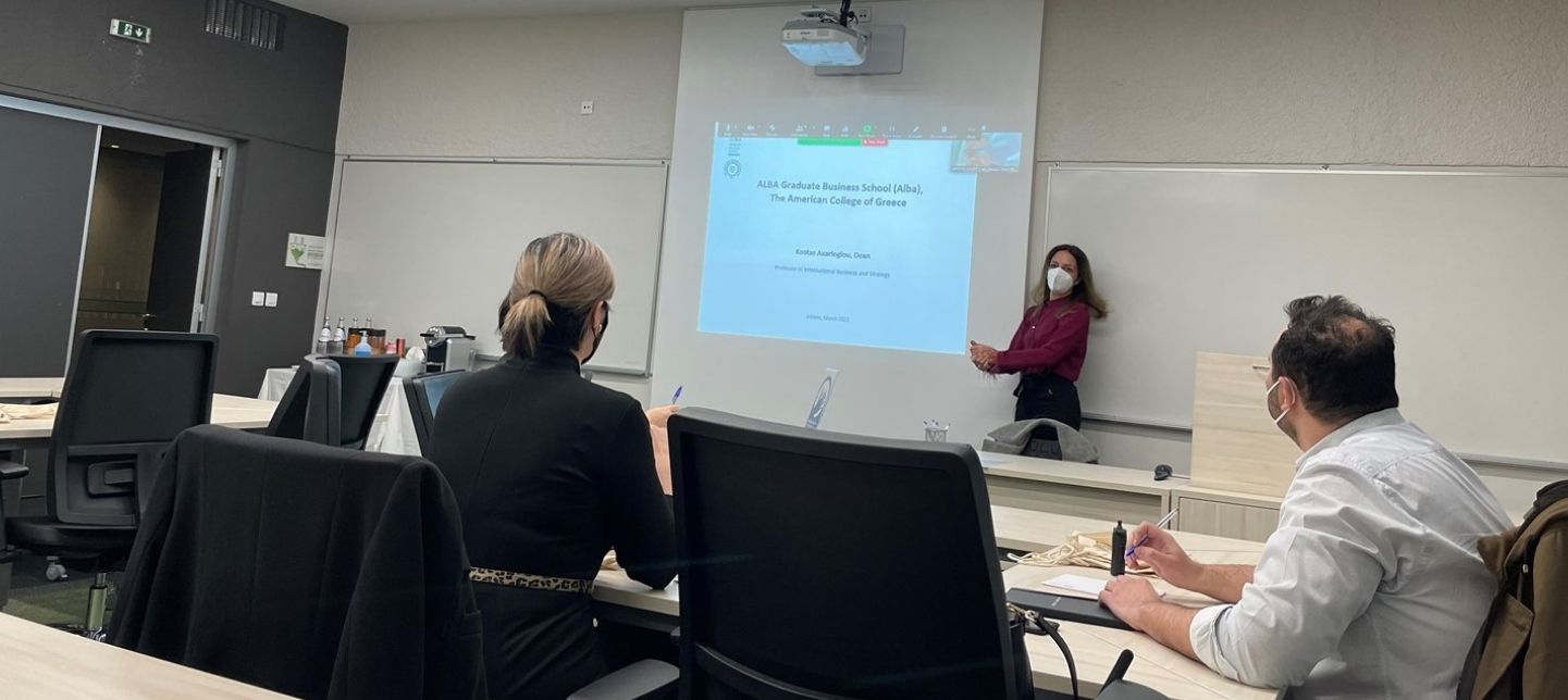 Members of the advisory board discussed with Dr. Baralou and Dean Axarloglou about the strategic positioning of the program, targeting two types of potential students: those practitioners who already hold a managerial position, but lack the academic and professional skills and those students who are about to graduate or have recently graduated, have a strong academic background, but limited if no work experience.