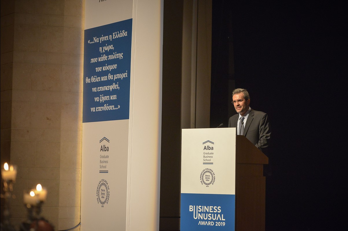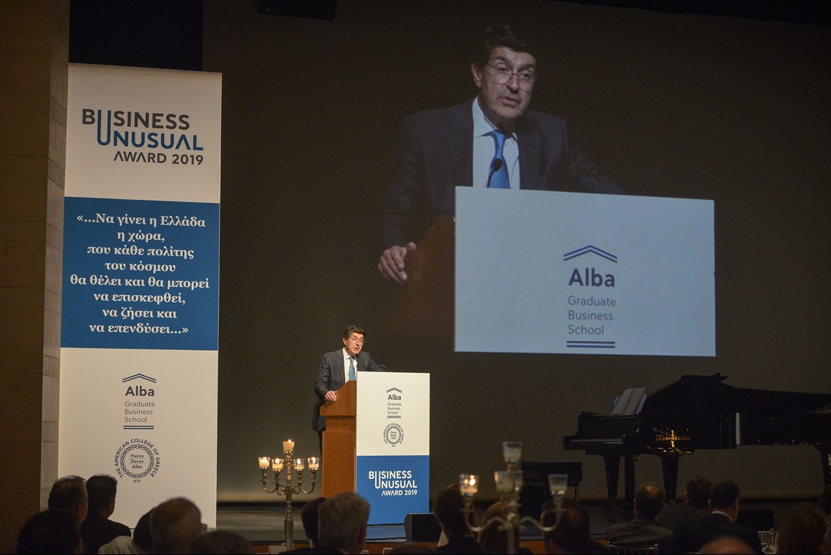 "Business Unusual Award is connected to the vision, principles and mission of Alba for it honors and celebrates entrepreneurs whose work is a catalyst of change and progress in Greece and abroad and serves as a model of sound business conduct,” said Alba Dean Kostas Axarloglou in his opening remarks, while linking the purpose of the award with Alba’s role and mission.