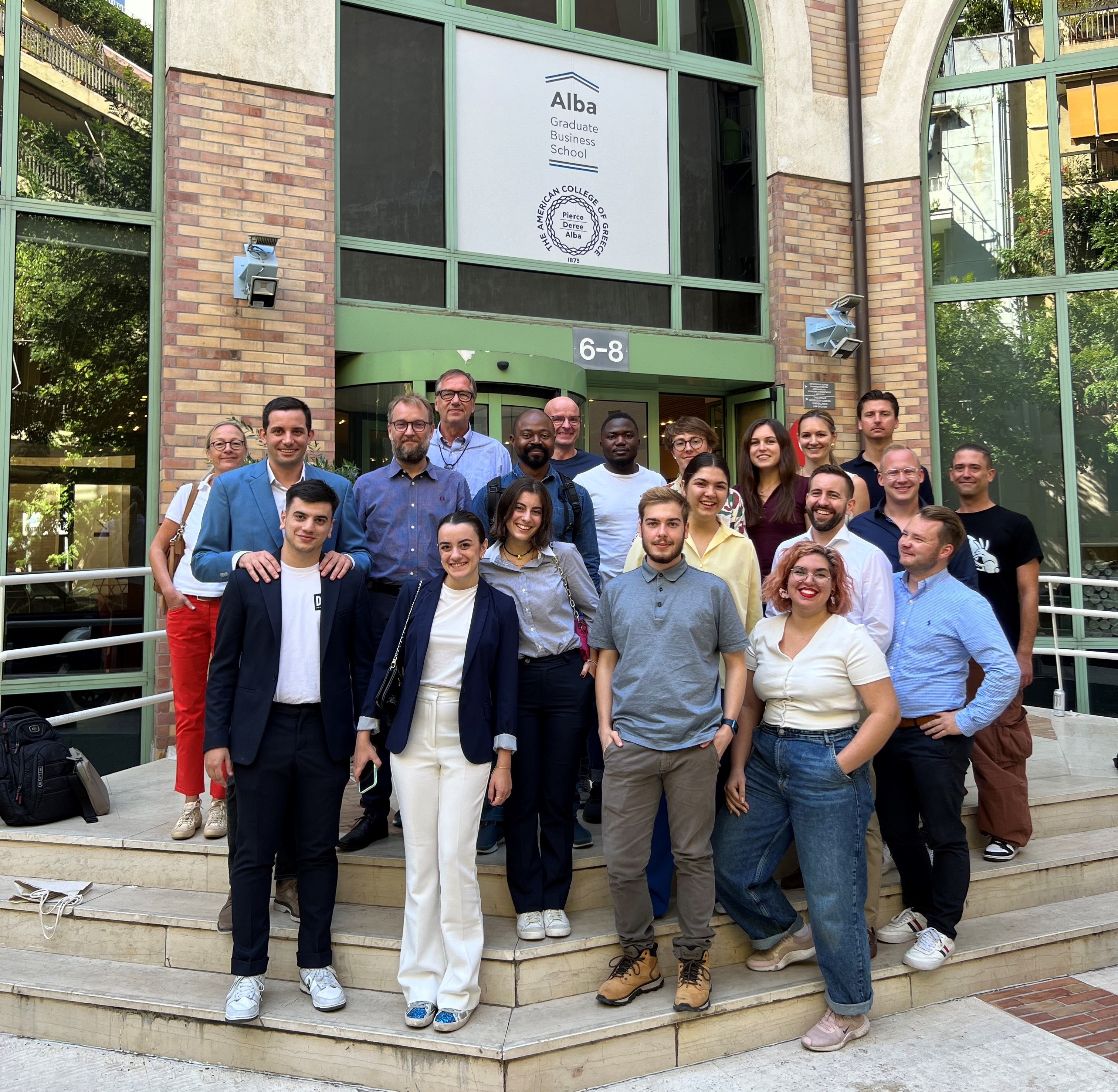 Last week, the HSB Hochschule Bremen – City University of Applied Sciences MBA program visited Alba for their annual field trip. This year HSB MBA students participated in an the opportunity mapping workshop with Alexis Komselis, Teaching Fellow and Director of AHEAD—Alba Hub for Entrepreneurship and Development, and worked on projects for pop2see and Physisorg. Students also visited COCO-MAT and had the chance to have a tour at Kokotos winery.