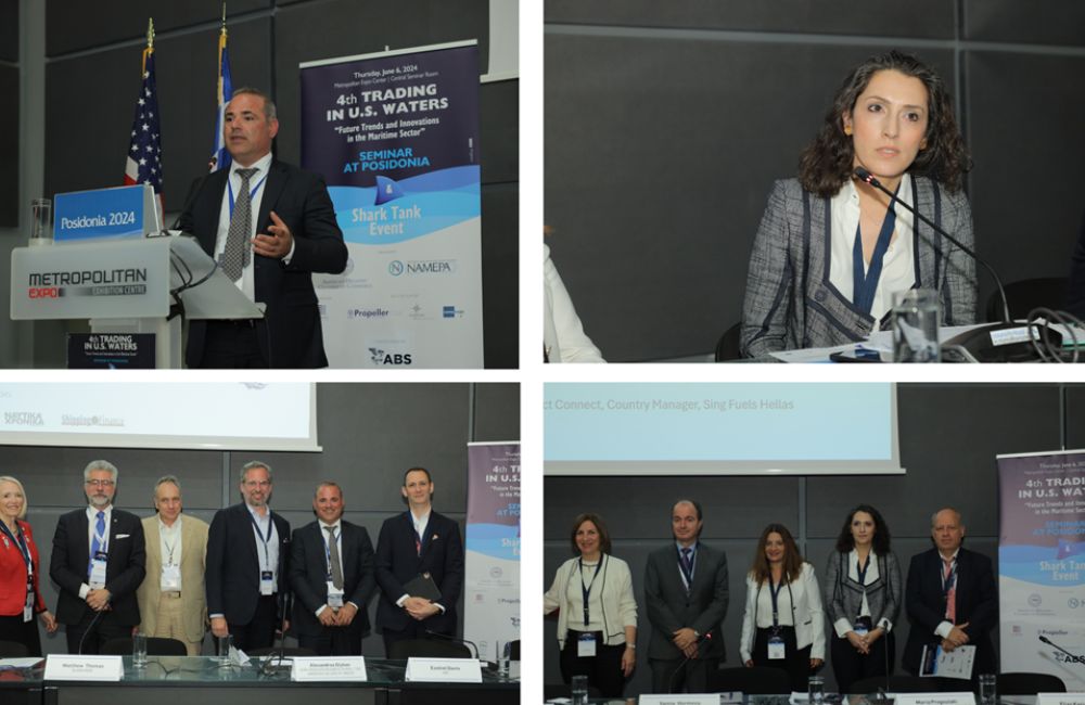 During Posidonia, our own Alexandros Glykas & Maria Progoulaki served as speakers at the “4th Trading in U.S. Waters Seminar: Future Trends and Innovations in the Maritime Sector,” event, organized by the American-Hellenic Chamber of Commerce and the North American Marine Environment Protection Association (NAMEPA), which took place as part of Posidonia on Thursday, June 6. The seminar was organized in cooperation with the U.S. Embassy in Athens.