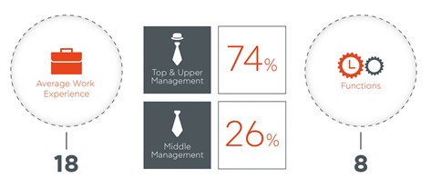 Harness a network of accomplished peers: Our professors are not the only source of learning. You learn from the experience of peers who have work experience of at least 10 years of which 3 to 5 years of solid management experience (i.e., managing people and/or projects) and share a passion to grow and potential to succeed.